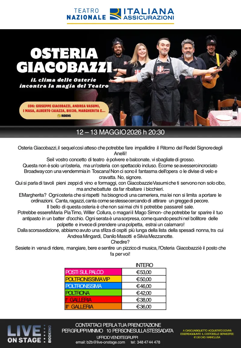 Prenotazione biglietti sul sito web all’indirizzo www.live-onstage.com o direttamente alla casella di posta elettronica.